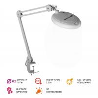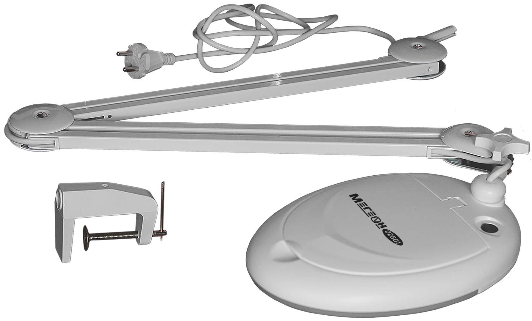 МЕГЕОН 02801 - новинка модельного ряда бестеневых ламп. Модель сочетает в себе: эргономичную форму, равномерную подсветку и высокую степень увеличения. Для установки изделия в комплекте предусмотрена струбцина, которая допускает крепление на край стола или полку стеллажа. Регулировка высоты осуществляется складной стойкой с пружинным механизмом удержания. Корпус изготовлен с применением современных и качественных материалов, а линза из минерального стекла. В качестве источника света были применены 80 ярких светодиодных элементов. Отличительной чертой такого освещения является: отсутствует мерцание и не раздражает глаза, а также продолжительный срок службы. Конспективный дизайн позволяет использовать изделие в производственном процессе, домашних условиях при чтении книг и даже в маникюрном салоне.